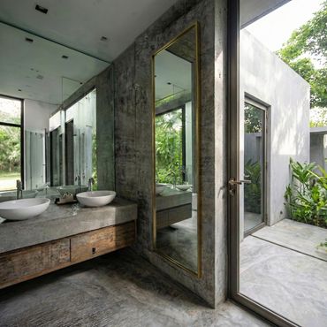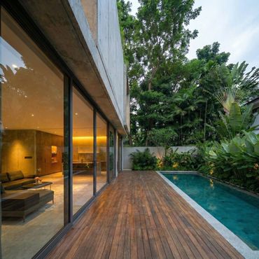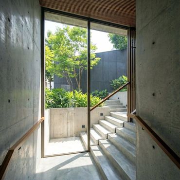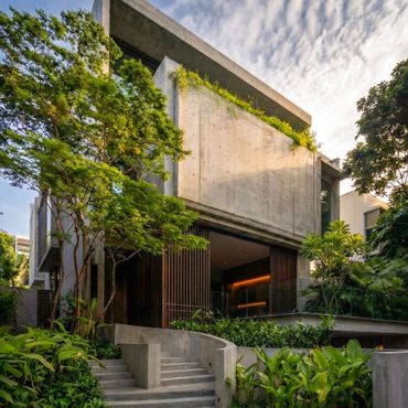 The Exposed Concrete Terraced House in Singapore is an exceptional showcase of modern spatial design, boasting a total living space of 440 sqm. The house is immediately recognizable by its bold and striking facade, constructed entirely of exposed concrete, which showcases the industrial aesthetic that is so sought after in contemporary design.