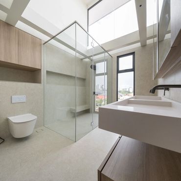 The Leow Terrace Residence in Singapore is an epitome of architectural evolution, expanding its footprint to a total living space of 360 sqm while increasing its Gross Floor Area (GFA) to 1115 sqft. This transformation is achieved through thoughtful reconstruction, meticulously preserving the essence of the existing structure while enhancing its overall spatial volume.