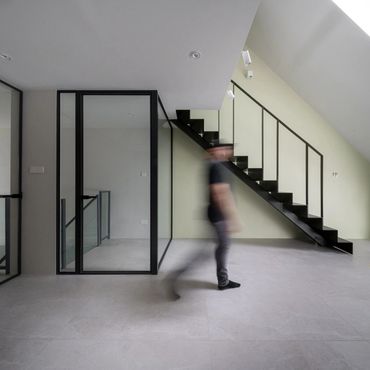Internally, the residence continues to embrace a classic black and white color scheme, a testament to timeless elegance. This monochromatic approach, along with the strategic use of larger windows, amplifies the natural light within, enhancing the sense of space and openness. The minimalist yet sophisticated decor stands as a serene counterpoint to the vibrant cityscape beyond. rebuild and submissions Landed properties Terrace Houses design and build
